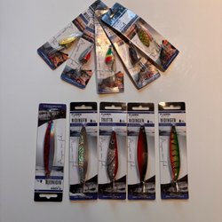 Fiskedrag från Nils Master, modell Invincible. Utrustad med två krokar och en röd och vit färgkombination. Passar för olika typer av fiske.