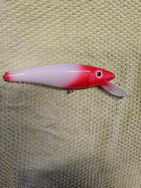 Wobbler 16 cm ca 35 gr. Egenmålad airbrusch. Krok 2/0. Fin gång lovas. Flytande, går ner 4-6 m vid trolling. Fin att kasta också. Samfraktar gärna