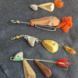 Fyra spinnare i olika färger och mönster. Passar för fiske och kan användas för olika typer av fiske. Inkluderar både metall- och plastkomponenter.
