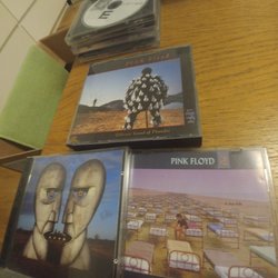 Ett paket med fyra CD-skivor: Simply Red - Picture Book, Crowded House - Together Alone, 10cc - How Dare You!, och U2 - Achtung Baby.