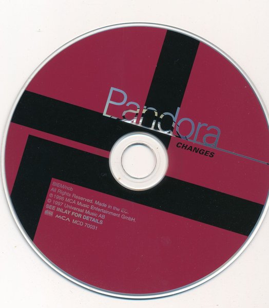 CD-skiva med Pandora - Changes. Utgiven 1996 av MCA Music Entertainment GmbH. Katalognummer: MCA MCD 70031. Se inlay för detaljer.