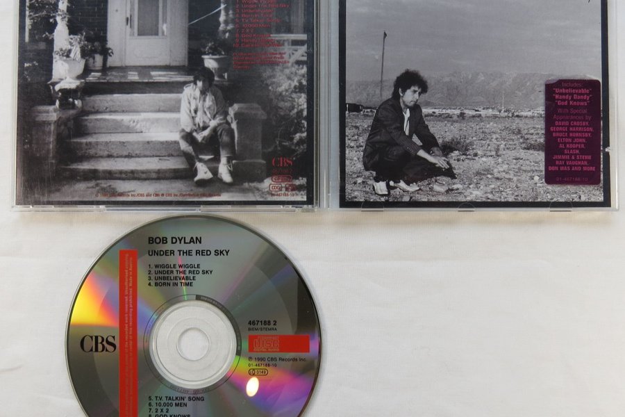 Bob Dylan - Under the Red Sky CD från 1990. Inkluderar låtar som "Unbelievable", "Handy Dandy" och "God Knows". Med gästframträdanden av David Crosby, George Harrison, Bruce Hornsby, Elton John, Al Kooper, Slash, Jimmie & Stevie Ray Vaughan och Don Was med flera.