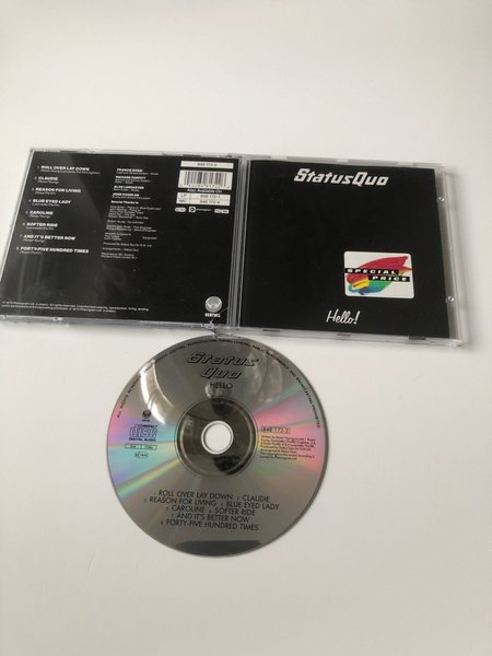 Status Quo - Hello! CD Låtlista: 1. Roll Over Lay Down 2. Claudie 3. Reason For Living 4. Blue Eyed Lady 5. Caroline 6. Softer Ride 7. And It's Better Now 8. Forty-Five Hundred Times