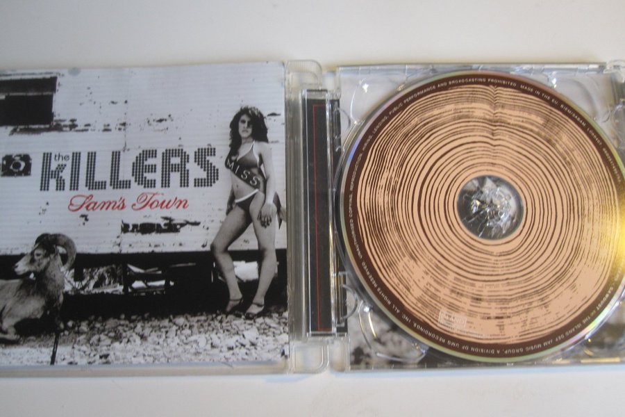 CD-albumet "Sam's Town" av The Killers. Skivan är tillverkad i EU med BIEM/SABAM LCG0407, 0802812498753.