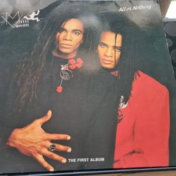 Milli Vanilli - All or Nothing vinylskiva. Skivan innehåller låtar som ”Girl You Know It's True”, ”Baby Don't Forget My Number” och ”Blame It on the Rain”.