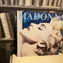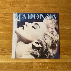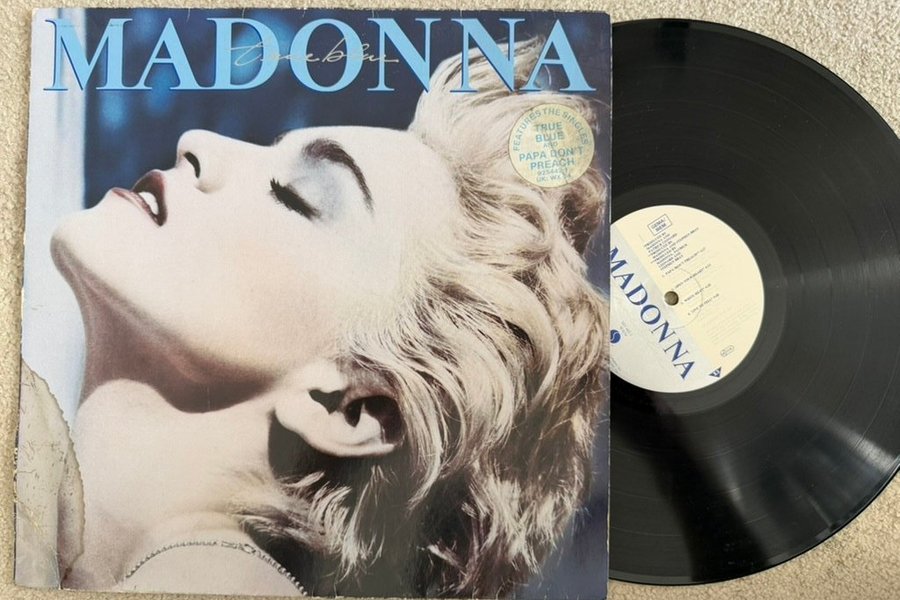 Vinylskiva med Madonna, albumet True Blue. Innehåller singlarna True Blue, Papa Don't Preach och Open Your Heart.