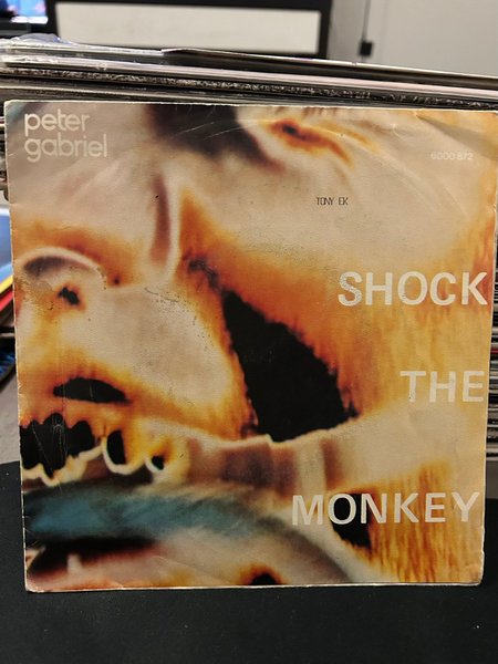Singel med Peter Gabriel. Titel: Shock The Monkey. Skivnummer: 6000 872.