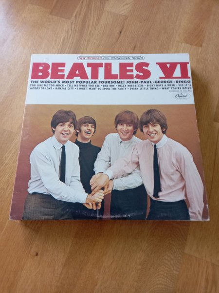 Vinylskiva med Beatles VI. Innehåller låtarna "You Like Me Too Much", "Tell Me What You See", "Bad Boy", "Dizzy Miss Lizzie", "Eight Days A Week", "Words Of Love", "Kansas City", "I Don't Want To Spoil The Party", "Every Little Thing" och "What You're Doing".