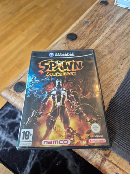 Spawn Armageddon för Nintendo GameCube. Spelet är licensierat av Nintendo och har en åldersgräns på 16+ enligt PEGI.