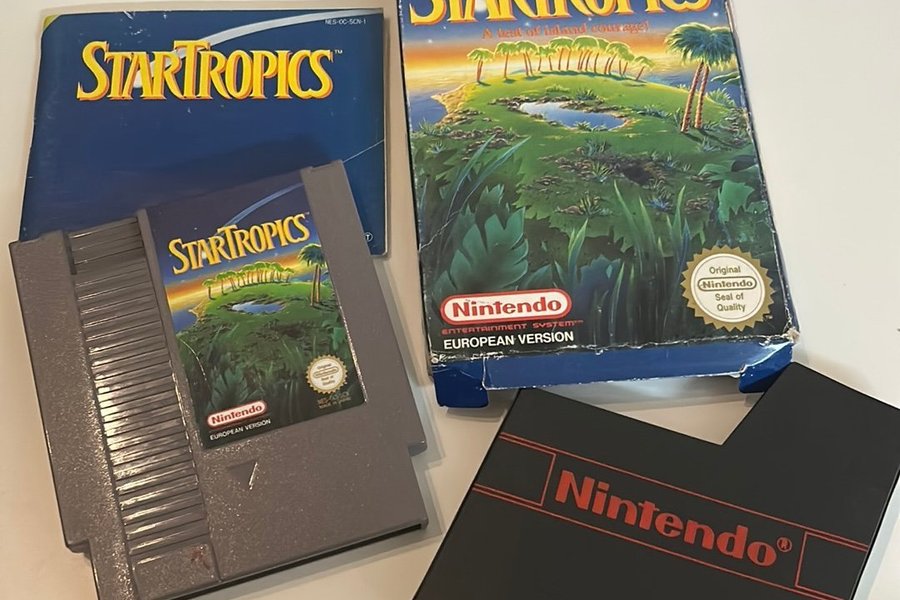 Komplett StarTropics spel till Nintendo NES. Inkluderar box, manual och kassett.