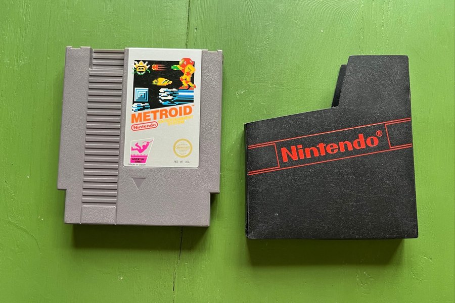 Metroid spelkassett för Nintendo Entertainment System -USA. Funkar ej på svensk konsol.