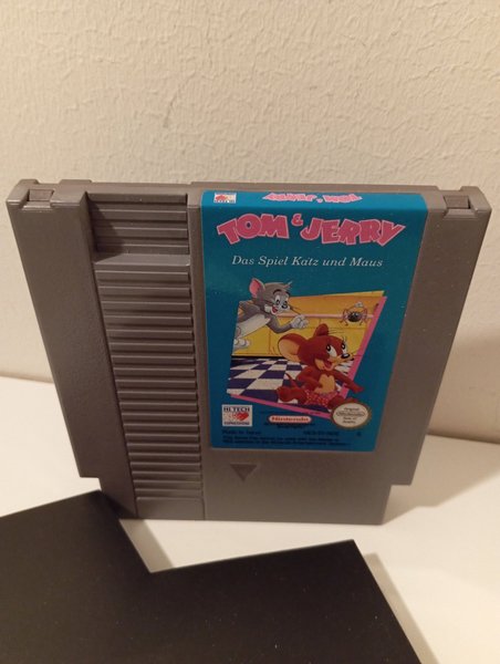 Tom & Jerry-spel för Nintendo NES. Spelet heter "Das Spiel Katz und Maus" på tyska.