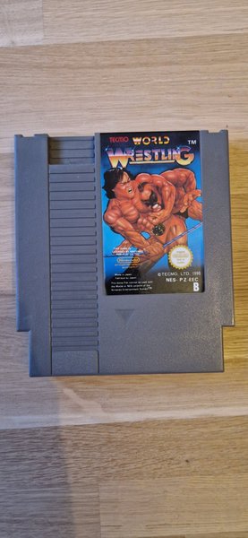 Tecmo World Wrestling till NES. Spelet är licensierat av Nintendo och tillverkat i Japan.