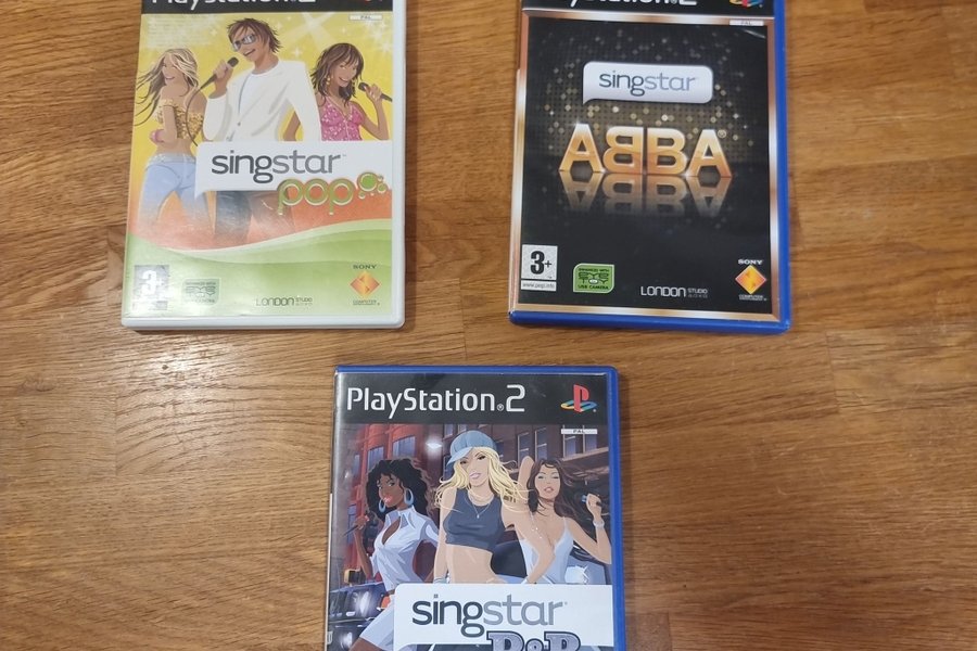 Tre Singstar spel till Playstation 2. Inkluderar Singstar Pop, Singstar ABBA och Singstar R&B.