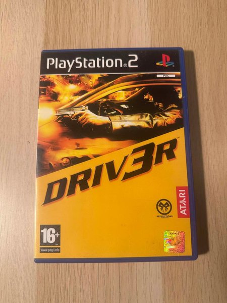 Driver 3 till PlayStation 2. Spelet är PAL-versionen och har en åldersgräns på 16+ enligt PEGI.