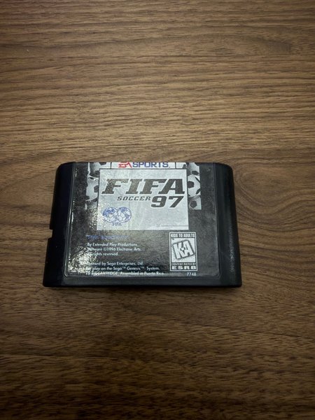 FIFA Soccer 97 till Sega Genesis. Spelet är licensierat av Sega Enterprises, Ltd. och utvecklat av Extended Play Productions och Electronic Arts.