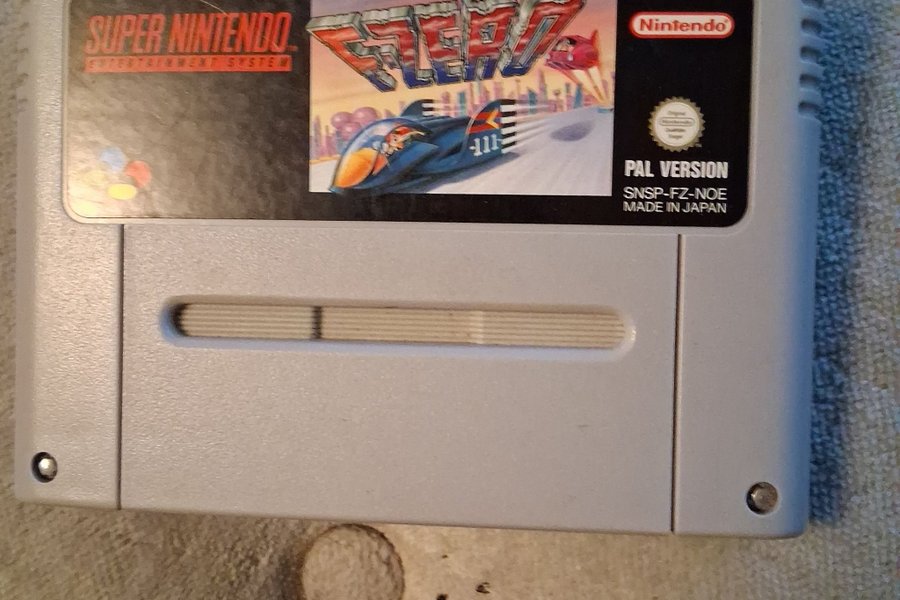 F-Zero till Super Nintendo Entertainment System (SNES). PAL-version, tillverkad i Japan.