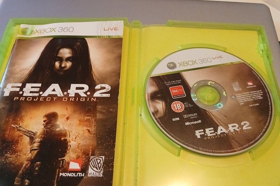 F.E.A.R. 2 Project Origin för Xbox 360. Spelet är PAL-kompatibelt.