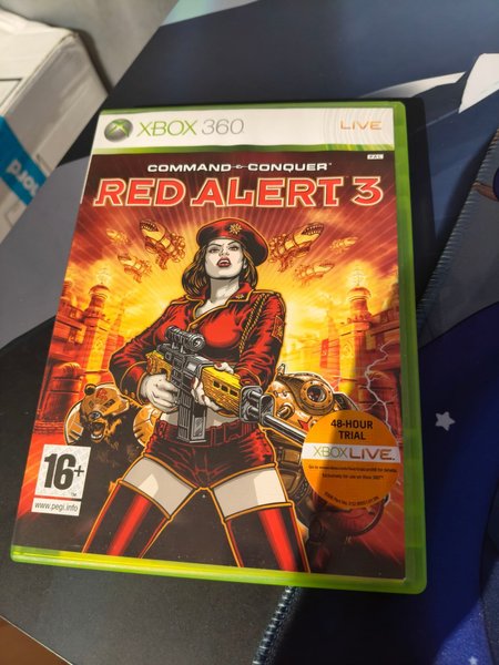 Command & Conquer: Red Alert 3 för Xbox 360. Spelet är PAL-kompatibelt och har en åldersgräns på 16+ enligt PEGI. Inkluderar en 48-timmars provperiod för Xbox Live.
