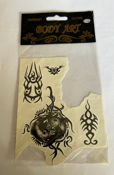 Bodyart/påstrykningsbara bilder typ tatuering som går att ta bort. Använt men det finns ju bilder kvar.