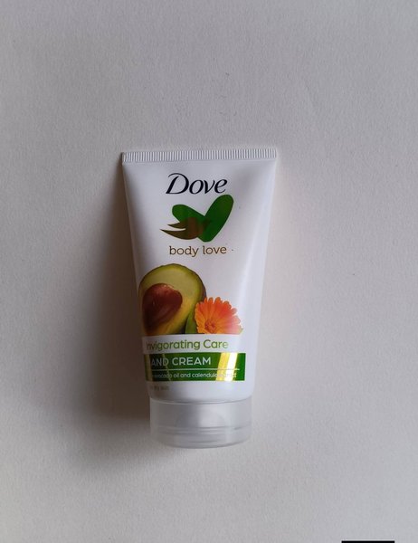 Dove Body Love handkräm för torr hud med avokadoolja och calendulaextrakt.