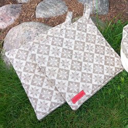 Färgglad lilarandig necessär.