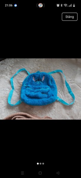 Ryggsäck med Stitch-motiv. Väskan är blå och har justerbara axelband.