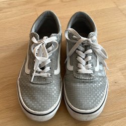 Blå röd och vit Vans ryggsäck, en riktig klassiker! Fint skick förutom en liten bit som släppt från sömmen vid dragkedjan, se tredje bilden.