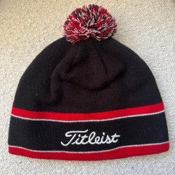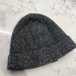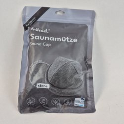 Fin tjock mössa. Mossgrön botten med svart mönster. Inte tvättad. Inga fläckar. Den har en liten lös tråd.