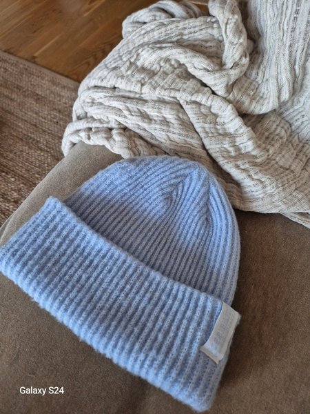 Ljusblå stickad mössa