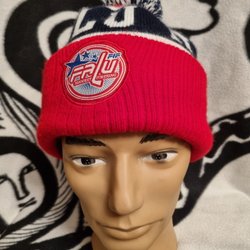 Vit, blå, röd mössa