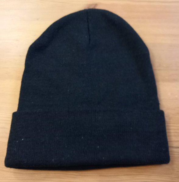 Svart mössa med uppvikt kant