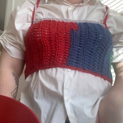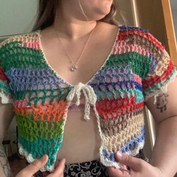 Färgglad virkad mössa