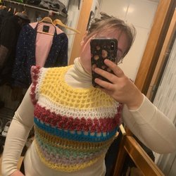 Färgglad virkad mössa med ett unikt mönster. Perfekt för att lägga till en färgklick till din outfit.