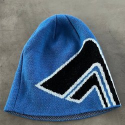 Grön mössa med en vit krona broderad framtill. Mössan har en ribbstickad design.