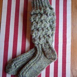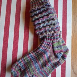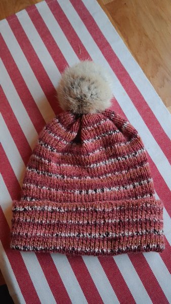 Rosa randig mössa. Handstickad