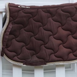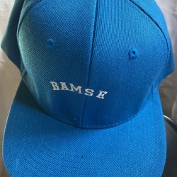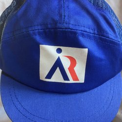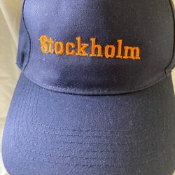 Blå keps med vit hästsko på framsidan. På baksidan står det "Svensk Ridsport" broderat.