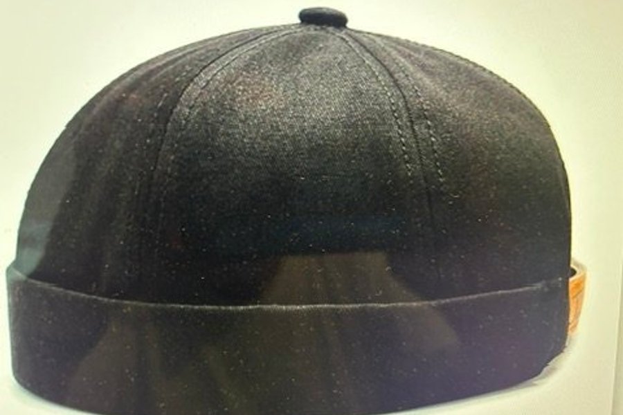 Svart bomullskeps, utan skärm, spänne baktill för perfekt passform.