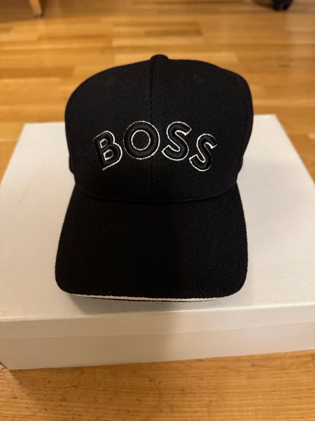 Säljer keps från BOSS. Kepsen är svart med vit text. Perfekt accessoar för en avslappnad look.