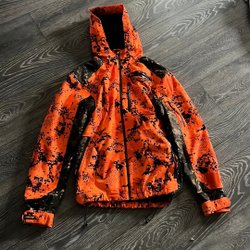 Ett par uppvärmda handskar med tillhörande batterier och laddare. Handskarna har en ficka med dragkedja för batteriet och en strömbrytare på ovansidan.