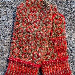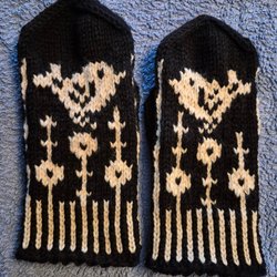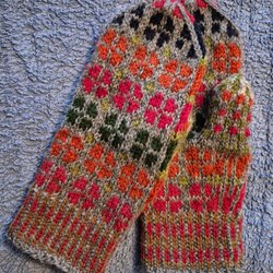 Ett par handstickade vantar, gjorda av mig.