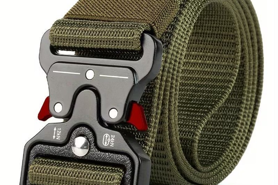 Ett slitstarkt och justerbart bälte med ett robust spänne. Bältet är designat för att vara både funktionellt och bekvämt.