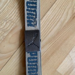 Bältet har rader med hål och nitar längs hela längden. Längd : 97 cm. Bred : 3,3 cm.