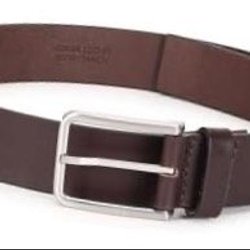 Ett cognacbrunt läderbälte med ett metallspänne.