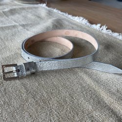 Brunt bälte med ett antikt guldfärgat spänne. Bältet har ett perforerat mönster och flera hål för justering.