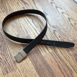 Ett bälte med ett klassiskt spänne i metall. Bältet har en enkel och tidlös design som passar till många olika stilar.