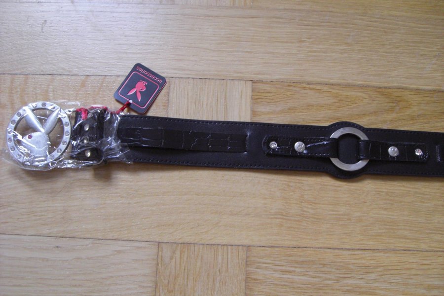 Playboy-skärp. Storlek M. Äkthetstag finns. Aldrig använt! Finns i Linköping, katter finns i rökfritt hem.
