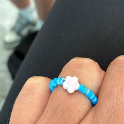 Ett dekorativt skärp med snäckskal och läderremmar, kan knytas för att justera storleken.