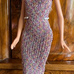 Fin klänning, stickad i Minicryl ett tunt mjukt babygarn samt pälsgarn, Stickade kläder är lätta för små fingrar att ta av och på. Garnet jag stickar i är tunt vilket gör plagget finare än med grövre garn. Mycket välstickad. Stickade kläder är mycket mjukare än virkade