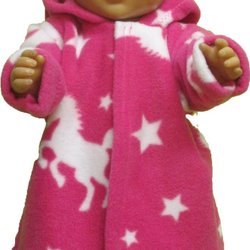 Setet är sytt i ljusblå och mönstrad fleece och passar till dockor som är ca. 43-45 cm.
